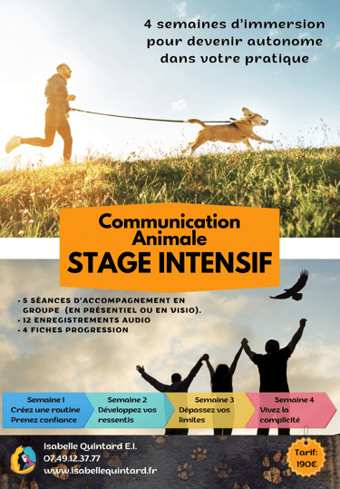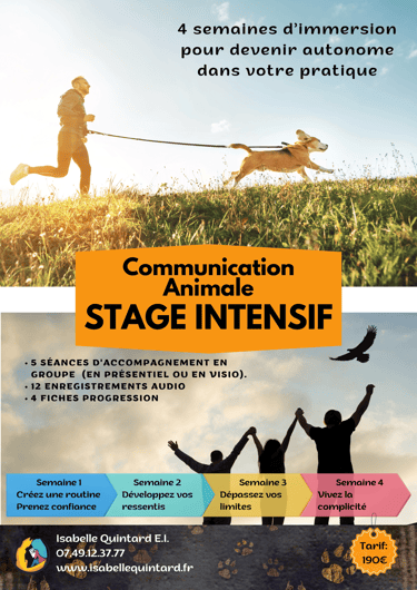 Stage intensif: 4 semaines d'exercices quotidiens avec des supports audio pour devenir bilingue en communication animale.